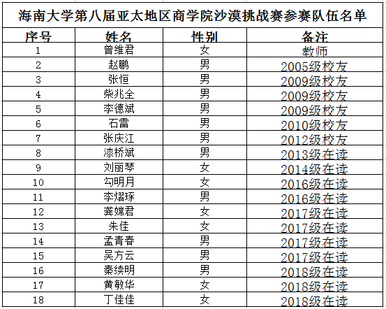 MBA参赛队其实完全是一支新军。按照赛制,我校去年第1次参加亚沙赛的队伍只能作为观摩队伍,不能冲击沙鸥奖。纵观亚沙赛的历史,无论是对于每一个队员还是每支队伍来说,第1次正式参加亚沙赛就能夺取沙鸥奖实在不敢说是容易的事情,很多人很多队伍都是征战多年才终于获得成功,对于参赛人数刚刚达标(冲击成绩的A队刚刚达到要求的12人,要求各赛段必须按时完赛的B队也是刚刚达到要求的6人),赛事保障队伍缺失(C队人数为0)的军拓队来说就更是难上加难的旅程。