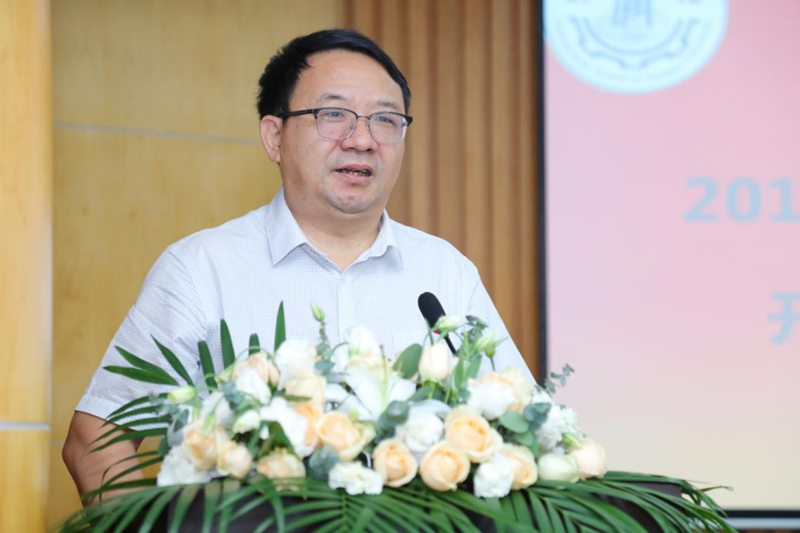 管理学院党委书记邢谷川致欢迎词,希望新生们热爱学校、学院,尽快投入到新的学习生活中,学会更系统地学习理论知识。