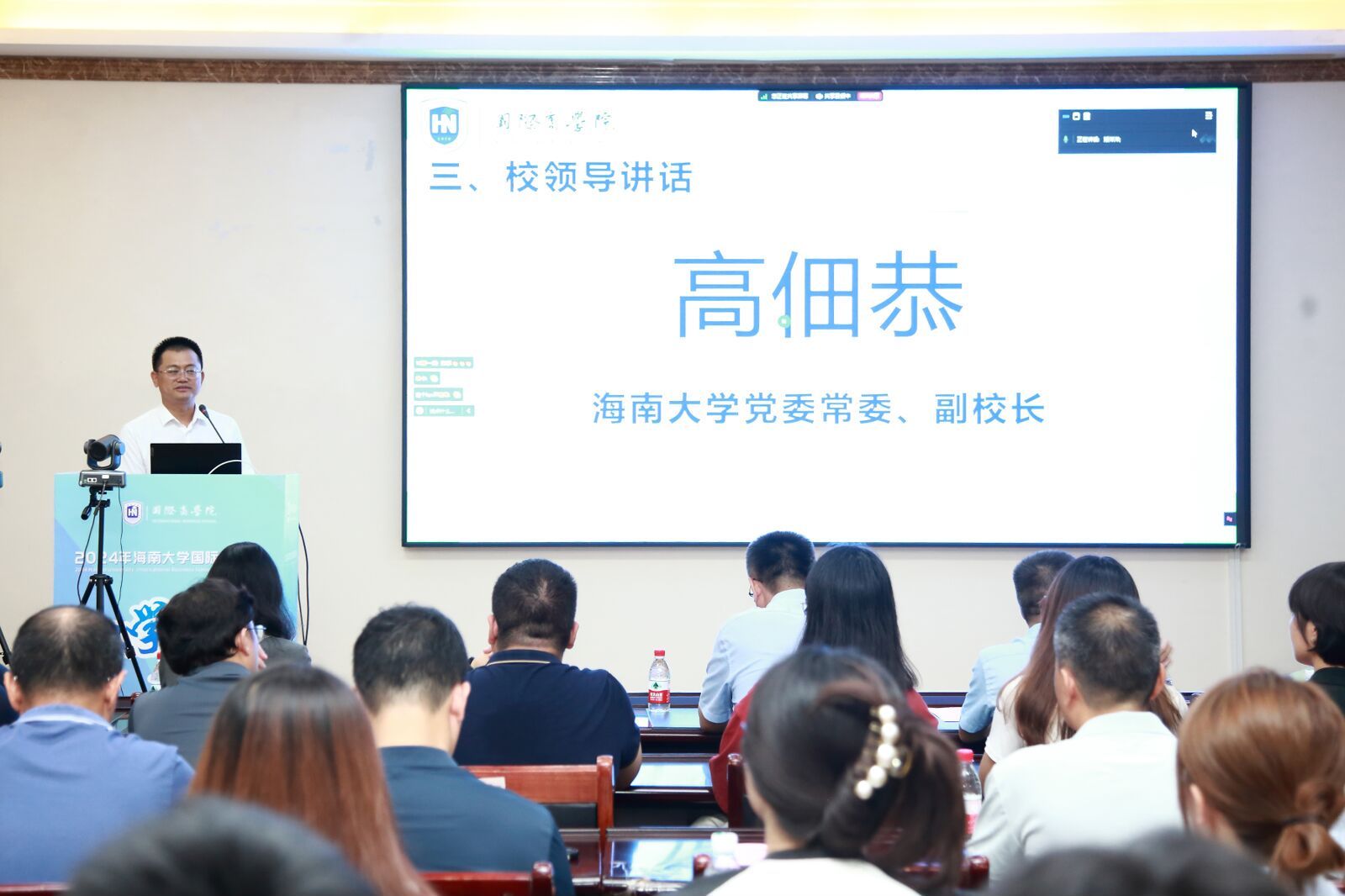 2024级新生们的到来表示热烈的欢迎与衷心的祝贺,介绍了学校发展现状并对学生们提出殷切希望。一是希望同学们珍惜时光,勤奋学习。超强台风“摩羯”给海南造成了重大损失,面对台风“摩羯”带来停水停电等重大挑战,省委省政府优先保障学校恢复供水供电,在具备条件的前提下抓紧复课复学。同学们要珍惜来之不易的学习机会,做到“三不一要”,即在求知求学的道路上奋发图强,不要沉迷于游戏,明确游戏与学习、生活的关系,努力学习专业知识,积极参与各类课外活动,丰富大学生活;遵守课堂纪律,按时上下课,不迟到早退;养成良好的生活习惯,坚持晨读晨练,不睡懒觉;要对得起自己的良知,勤奋学习,自律自强。二是希望水仙直播