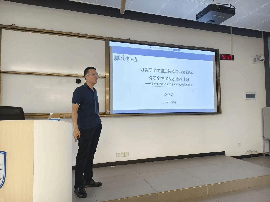 赵达副院长详细介绍了深化完全学分制改革的核心内容,包括完善专业核心课程建设、优化选课修课方案和免修免听实施方案、学生课程考核管理方案、实验教学管理方案、学生自主选择专业和完善教学工作机制建设等内容。他强调,深化完全学分制改革要加强教风学风建设,努力营造“严谨治学、追求卓越”和“诚实守信、激情探索”的校园氛围,打造“教在海大、学在海大”品牌。他鼓励学业导师积极引导学生进行个性化成长学习。