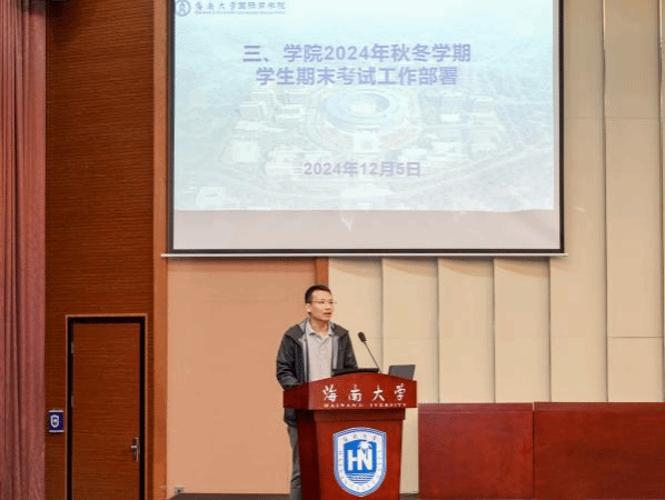 赵达副院长就学院2024年秋冬学期学生期末考试工作进行了部署,并强调了学风建设的重要性。他要求全体教师以最高标准严格要求自己,确保考试的规范性和成绩的公正性。同时,他还鼓励教师们加强与学生的沟通交流,帮助学生树立正确的考试观念,共同营造公平公正的考试环境。