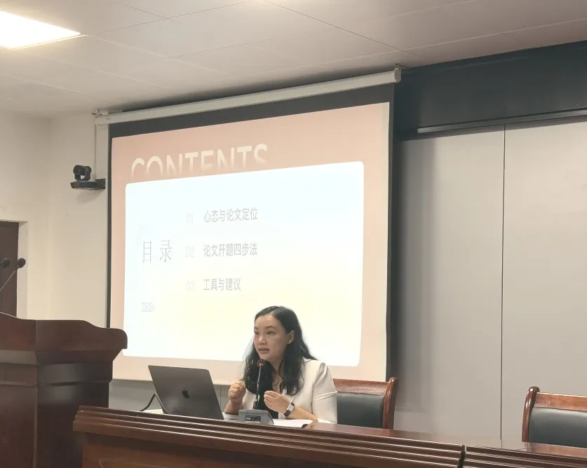 黎春燕教授则以亲和易懂的风格,围绕人力资源方向论文写作的常见困惑与应对策略进行分享。她指出,论文应避免“大而空”的泛化表达和“小而冷”的窄化选题,并结合案例加深学生理解。黎春燕还介绍了四种常用研究方法,强调时间规划与写作节奏,并分享了“岗位+痛点”的研究思路。她特别提醒同学们重视与导师的沟通协作,为高质量完成论文保驾护航。