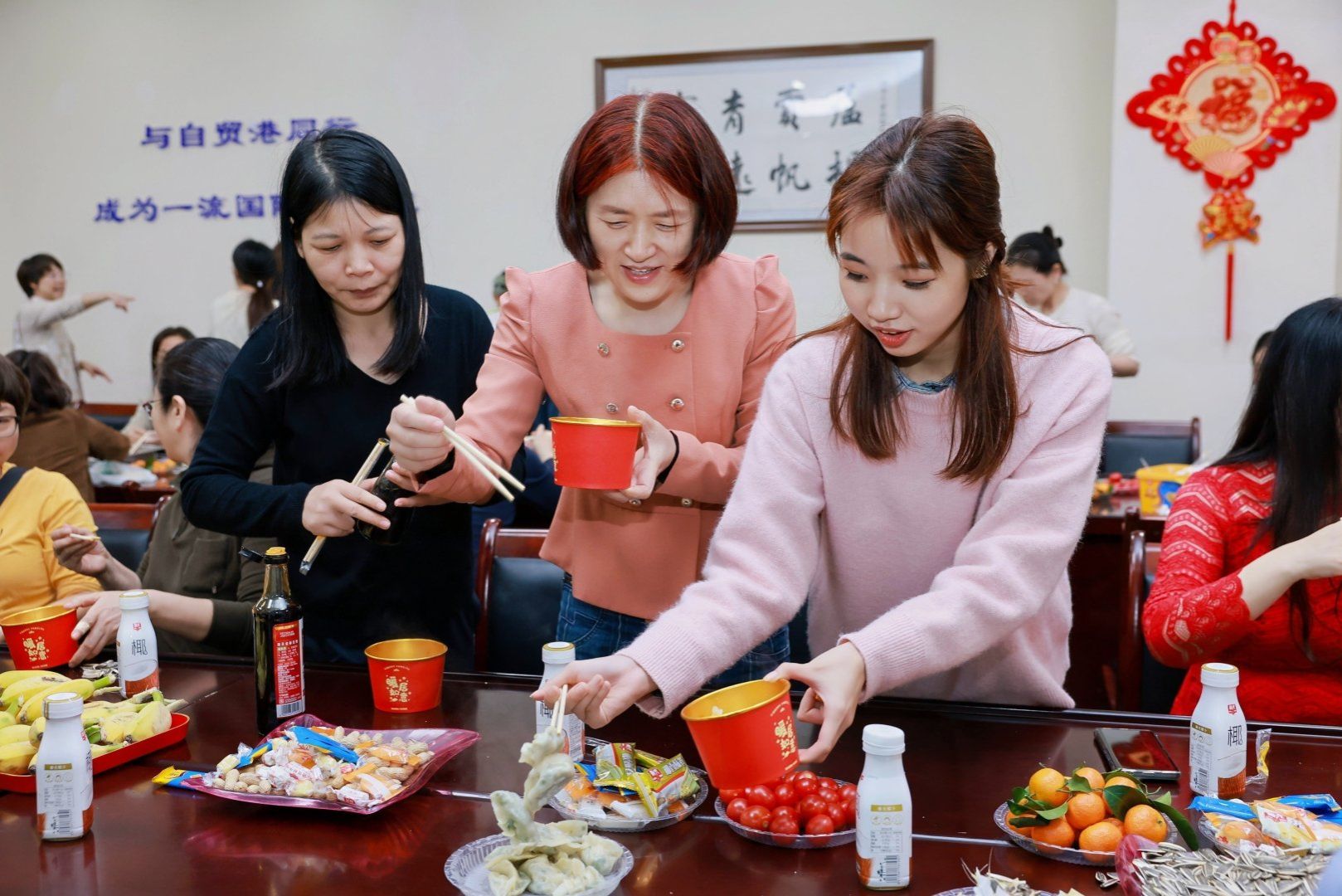 在温馨喜庆、欢乐祥和的现场氛围中,教职工们踊跃参与到包饺子、写春联、套圈游戏等环节中,场面热闹非凡。饺子制作区笑语不断,大家分工协作,包出形态各异、寓意吉祥的饺子;春联书写处墨香飘溢,老师们挥毫泼墨,一笔一划书写对新年的美好祝愿;趣味套圈活动中欢呼声此起彼伏,轻松愉快的互动将现场气氛推向高潮。