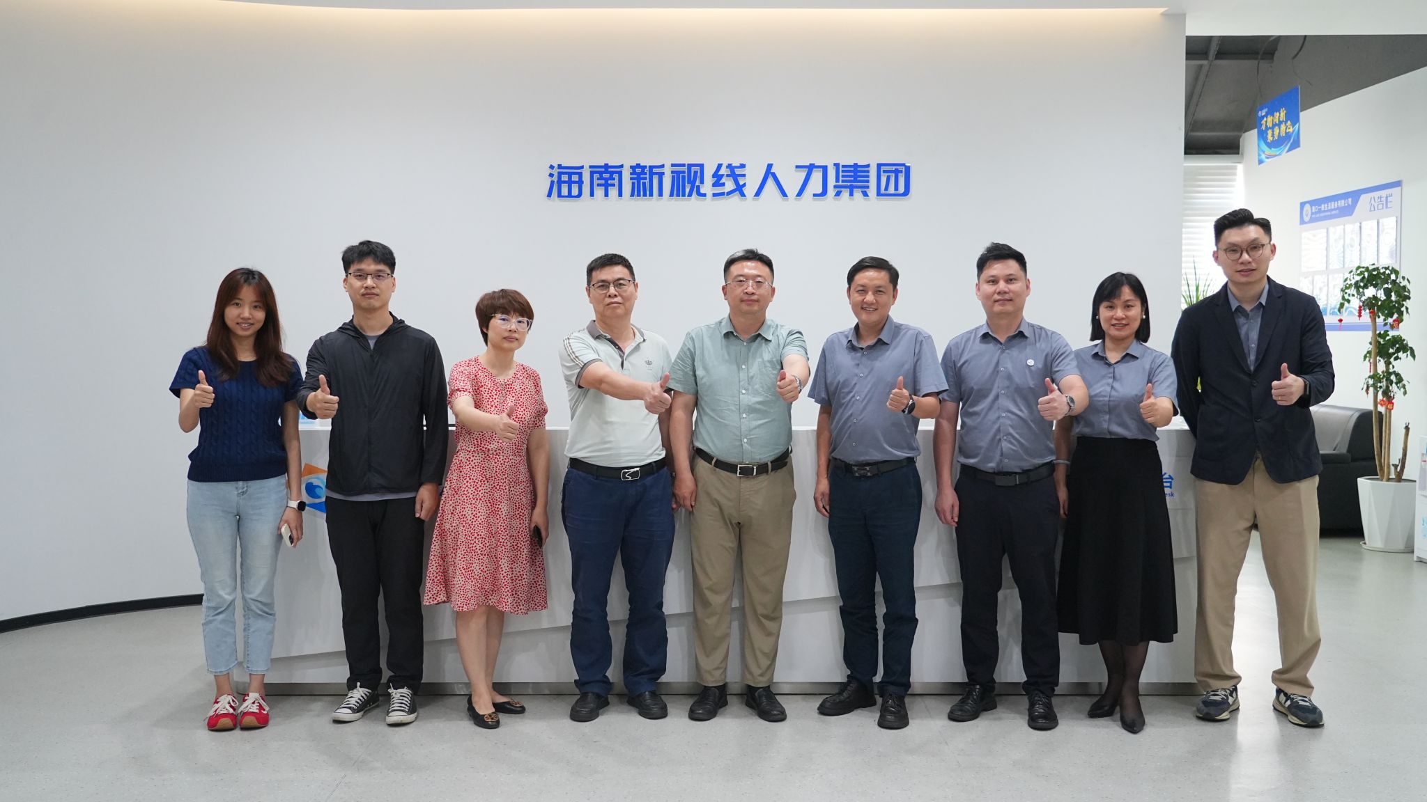 海南新视线人力资源集团管理咨询公司总经理孙岩、创业就业公司总经理符国振,网络科技公司总监邓锦宏,人资部门经理许莉莉,水仙直播