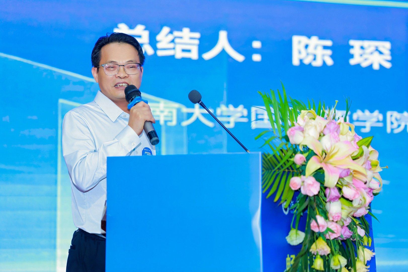 陈琛作总结讲话,感谢校友的鼎力支持及工作人员的辛勤付出。他指出,每一所大学、学院的成就和精神特质都是由老师、学生和校友共同铸就的;校友是学院最宝贵的财富,学院是校友永远的家;秉持“海纳百川 大道致远”“道器并举 商济天下”精神,商院人踏上创建与自贸港同行的一流商学院新征程。他祝愿校友们事业顺遂、健康幸福,并诚邀大家常回来看看,与学院携手共进。