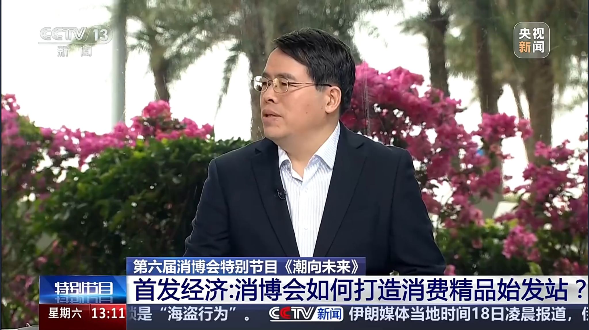 颜洪平教授应邀做客中央广播电视总台新闻频道消博会特别节目《潮向未来》演播室,围绕“首发经济”与“消费新场景”等议题接受专访。
