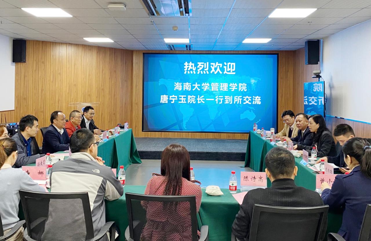 之后,双方就学生培养、平台建设、热带农业发展、未来规划等方面内容展开了亲切交流与深入讨论。唐宁玉院长与黄贵修所长正式签署合作框架协议,在今后,双方将本着“优势互补、双方互动、合作共赢、共谋发展”的原则,充分发挥彼此优势,通过整合各方资源,采取联合培养研究生、平台(基地)共享共建、共同组建科研团队,联合申报科研项目,组织开展学术交流等措施加快提升科学研究水平和人才培养质量,协同推进热带农林经济管理学科发展,为热带农业发展和海南自贸港建设提供强有力的科技和人才支撑。