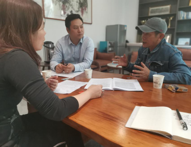管理学院校友发展中心,品牌创新工程中心童泽林主任、王萍老师与东方甘薯产业协会吴耀丰会长研讨甘薯品牌发展战略。