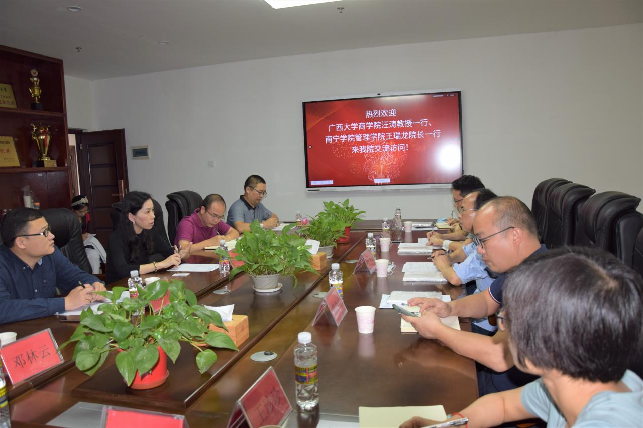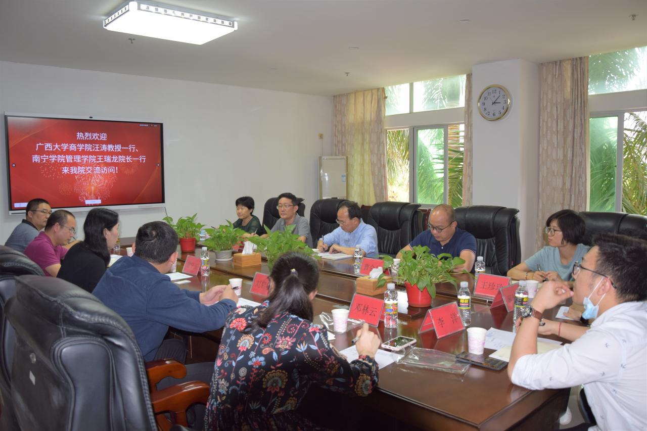 管理学院、广西大学商学院、南宁学院管理学院分别介绍了各自学院的基本情况,并围绕专业建设、制度建设、文化建设、实验室建设等方面内容展开交流,表示之后将继续加强交流合作,共同促进发展。
