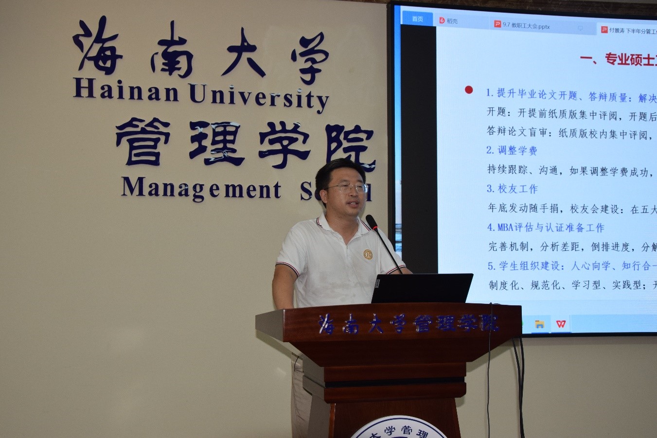 各分管院领导在会上分别汇报了分管工作开展情况及下半年工作计划,学院教学、科研、人才引进、学生工作、对外交流、高管培训、地方服务等各项工作均扎实开展并取得显著成效。