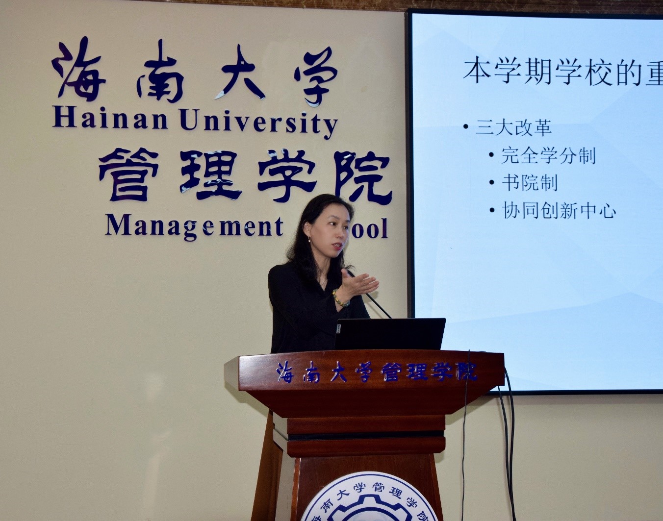 唐宁玉院长指出,要紧跟学校步伐,做好完全学分制、书院制、协同创新中心三大改革工作,以积极的心态拥抱变革,坚持初心不改做强自己,充分发扬开源节流、艰苦创业的精神,始终以“贡献管理智慧,培养高素质人才,服务自贸港建设”为使命,将学院建设成为区域内一流商学院。