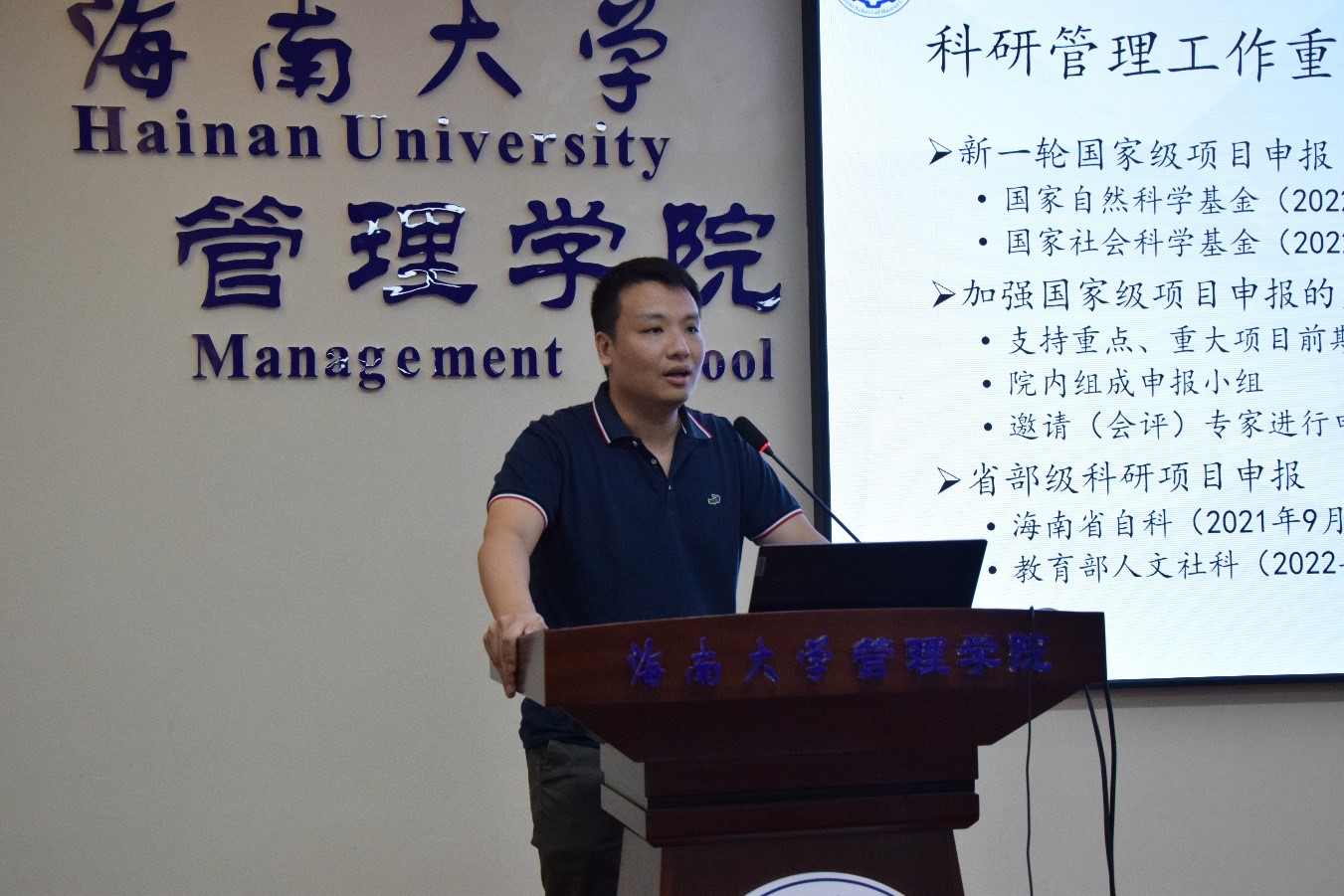 傅国华副校长在讲话中提到,近期管理学院在各方面表现都获得好评,“热带农林经济管理理论创新与产业实践人才团队”申报“海南省优秀人才团队”已进入实地考察环节,成为学校两个入围的团队之一;开办公司治理英才班等高管培训项目,扩大社会影响力。他表示对管理学院的未来发展充满信心,希望学院继续努力,再创佳绩。