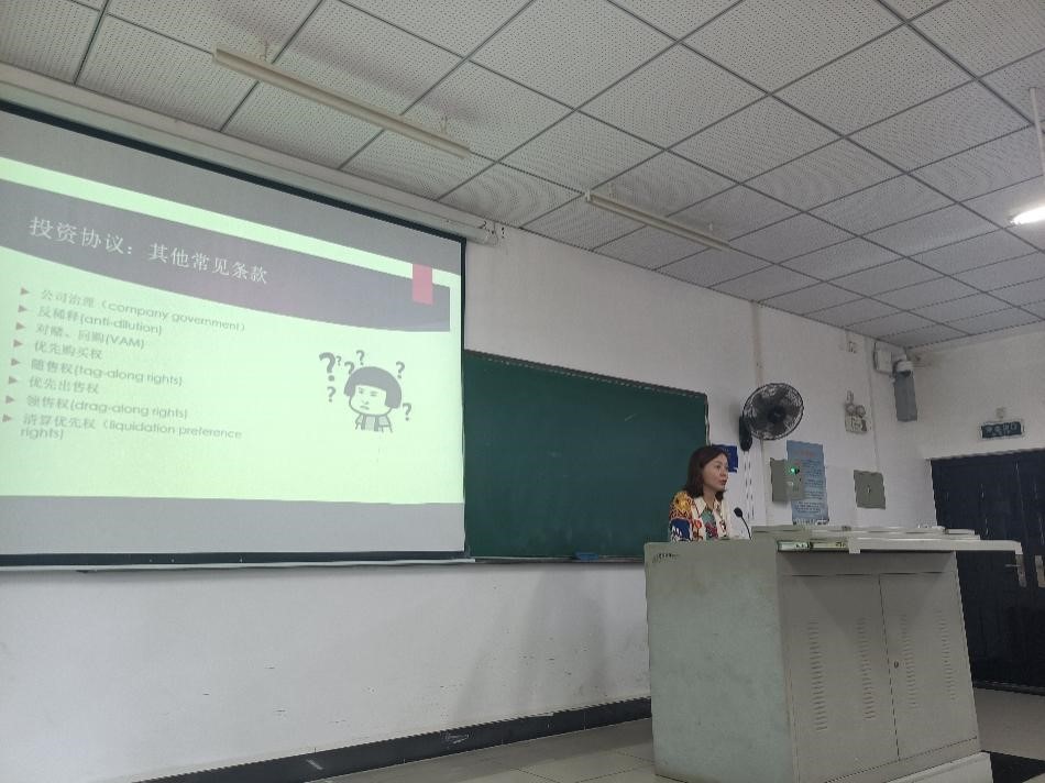 汪翼鹏老师从PE投资业务、PE会计问题、PE税务问题三个方面进行重点讲解。首先对企业生命周期及其融资方式进行细分和深入剖析,结合生动案例与同学们进行探讨和研究。她通过类比影视戏剧中的角色,对基金进行分类,生动形象地体现各类基金之间的差别。她还对基金投资全生命周期的四个步骤展开分析,对PE一般投资流程进行细致讲解。在最后的交流提问环节,汪翼鹏老师对同学们接下来的学习和生活提出建议并推荐了本专业相关的书籍。