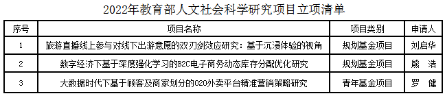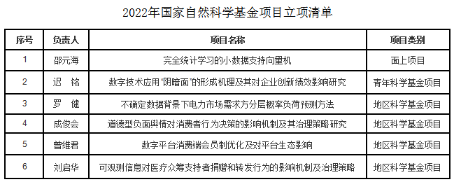 2022年管理学院科研项目申报工作再创佳绩,获批6项国家自然科学基金项目1项国家社科基金项目和3项教育部人文社会科学研究项目。