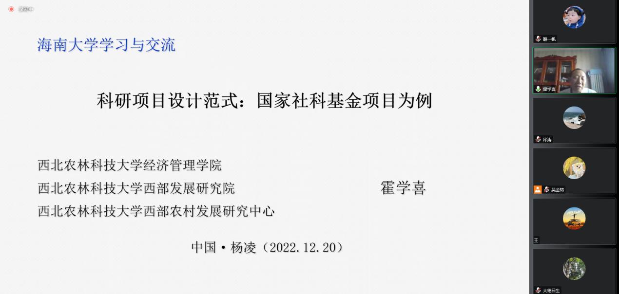 师生作主题为“科研项目设计范式:国家社科基金项目为例”的讲座(线上视频形式)。讲座由赵达副院长主持,张德生副院长、许能锐副院长及管理学院师生50余人聆听了本次讲座。