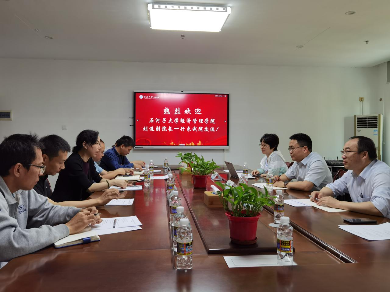 管理学院交流。管理学院院长唐宁玉,副院长张德生、许能锐、赵达出席会议,工商管理系、会计系系主任参加会议。会议由管理学院院长唐宁玉主持。