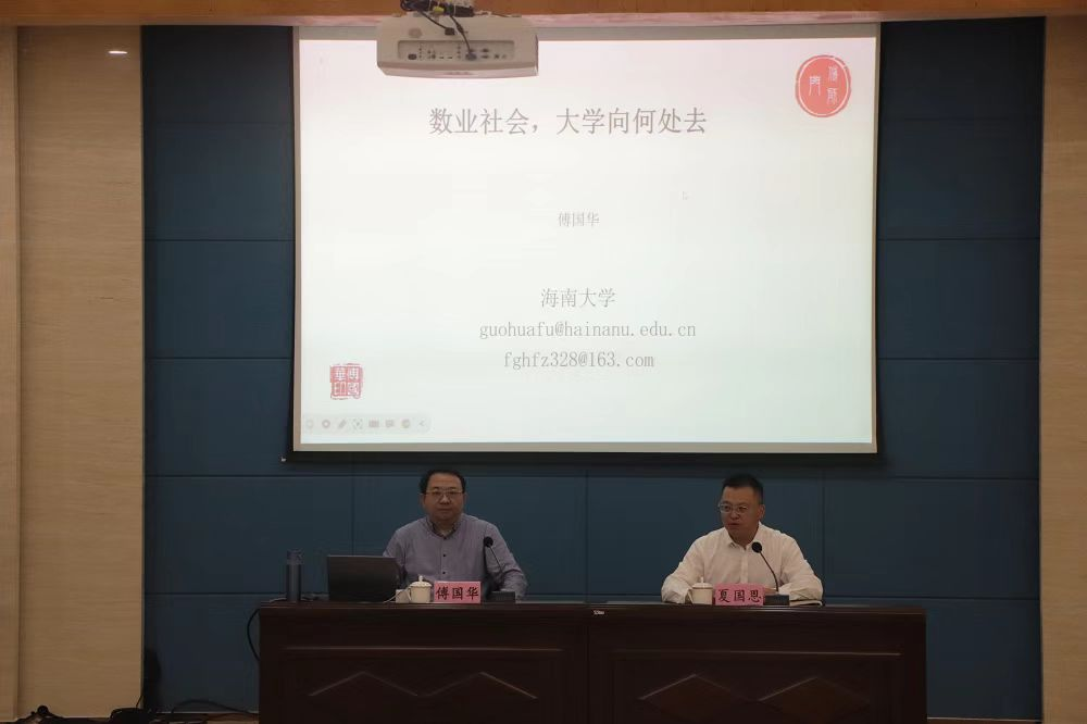 3月24日上午,傅国华教授为广西财经学院经济与贸易学院师生作《数业社会,大学向何处去》主题讲座,广西财经学院副校长夏国恩教授主持。傅国华教授由农业、工业演进进程创新提出 “数业”概念,构建了 “三数理论”,以数业经济、数业社会、数业文明为框架,提出了数字经济是将数源生产为数品,通过数业平台进行交易、消费与结算创造经济财富的一种新经济。