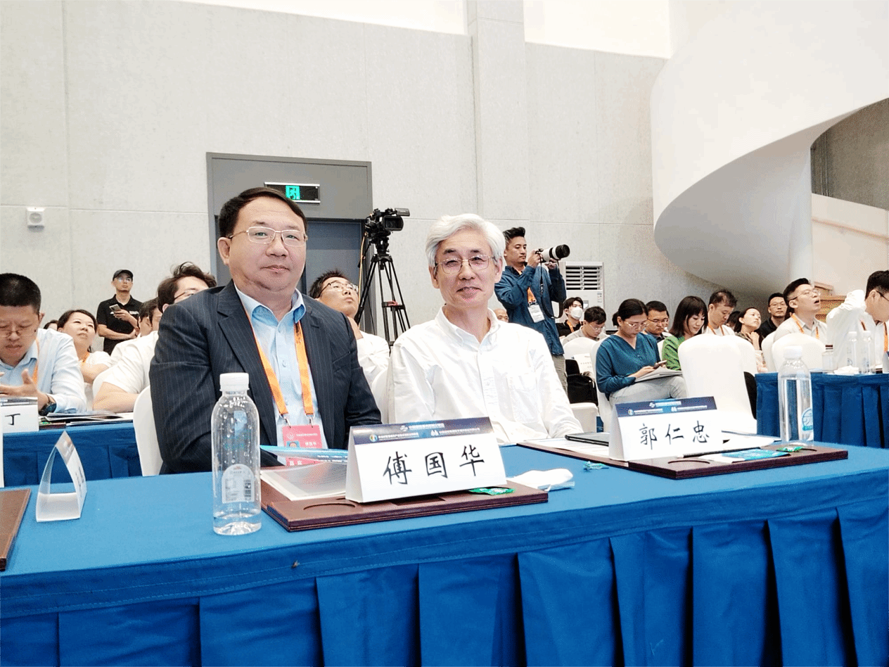 图1:傅国华教授与中国工程院院士郭仁忠教授交谈