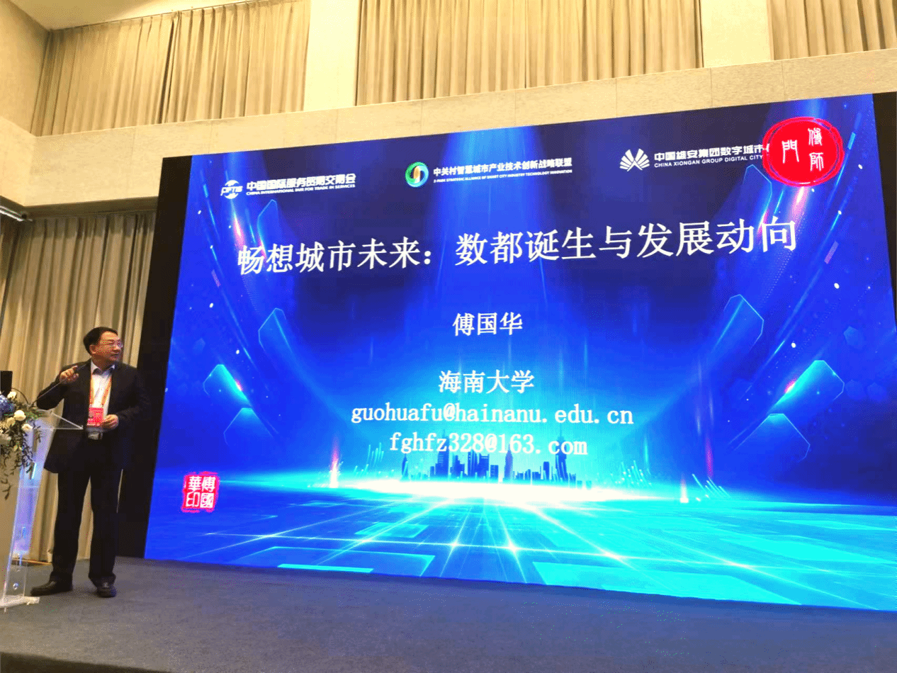 傅国华教授受邀赴北京参加以“践行数字孪生、畅想城市未来”为主题的“2023服贸会数字孪生专题论坛”,中国国际服务贸易交易会(简称服贸会)是由中华人民共和国商务部和北京市人民政府共同主办的国家级、国际性、综合型展会。服贸会是全球首个,目前规模最大的服务贸易领域综合型展会,也是中国对外开放重大展会平台。