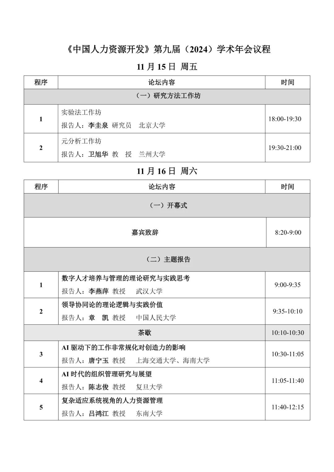 (海南省海口市)联合举办“《中国人力资源开发》第九届学术年会(2024)”。现将会议议程发布如下: