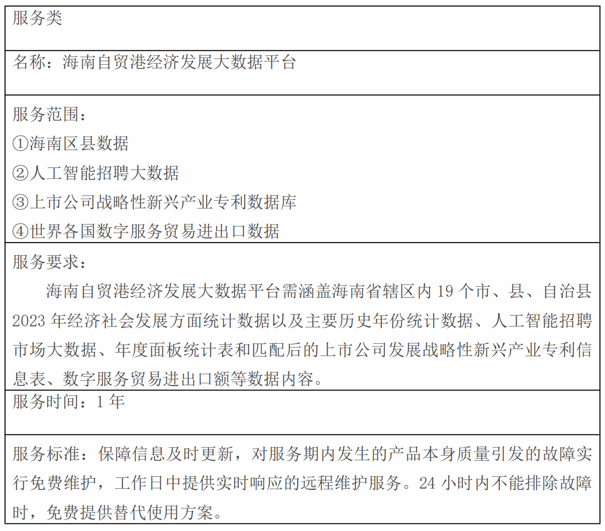 二、项目名称:采购海南自贸港经济发展大数据平台