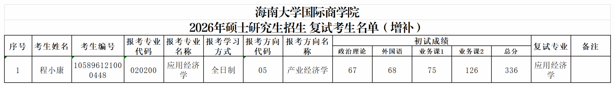 注:应用经济学复试考生宋星硕因个人原因自愿放弃复试资格,故根据初试总分排序(须符合国家线总分和单科要求),顺延增补以上考生进入复试名单。