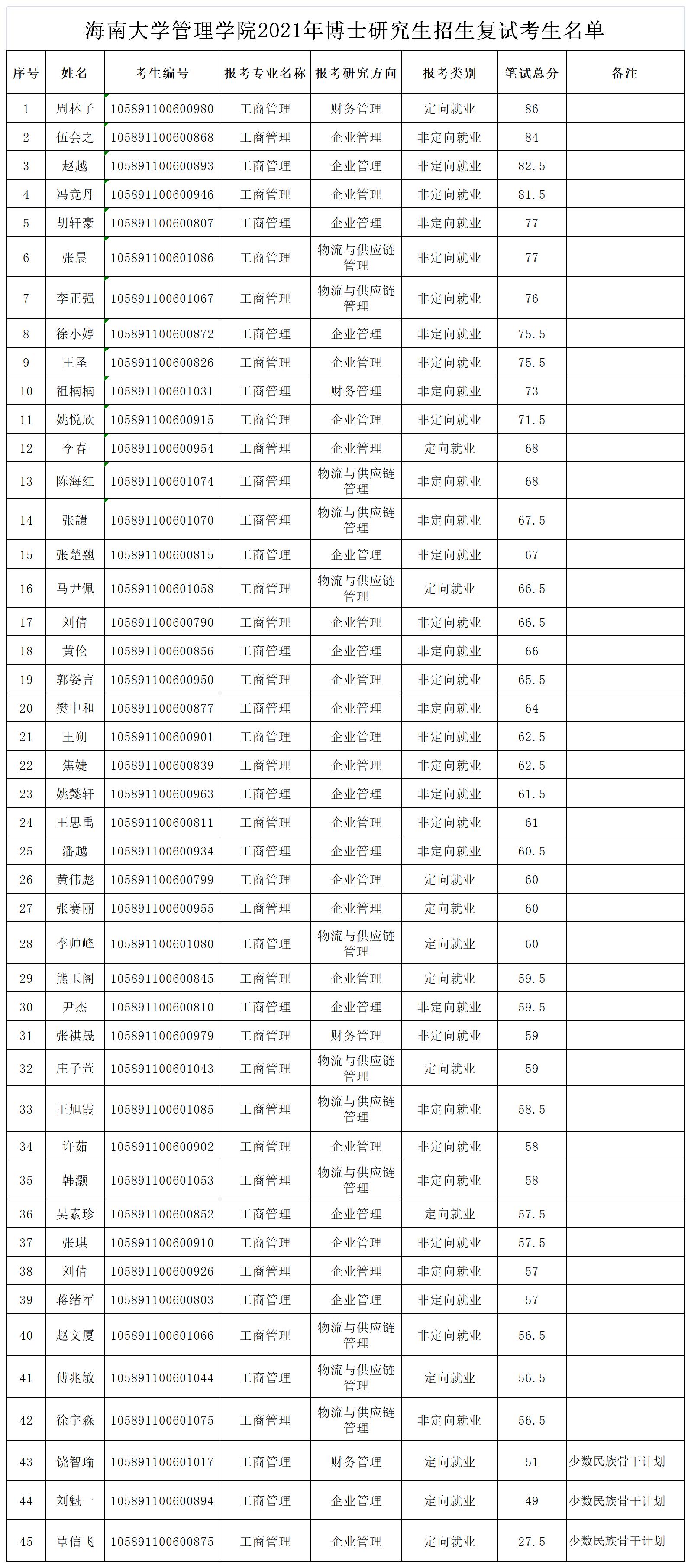 水仙直播 管理学院2021年博士研究生招生复试考生名单