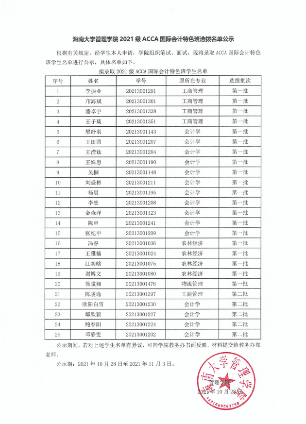 水仙直播 管理学院2021级ACCA国际会计特色班选拔名单公示