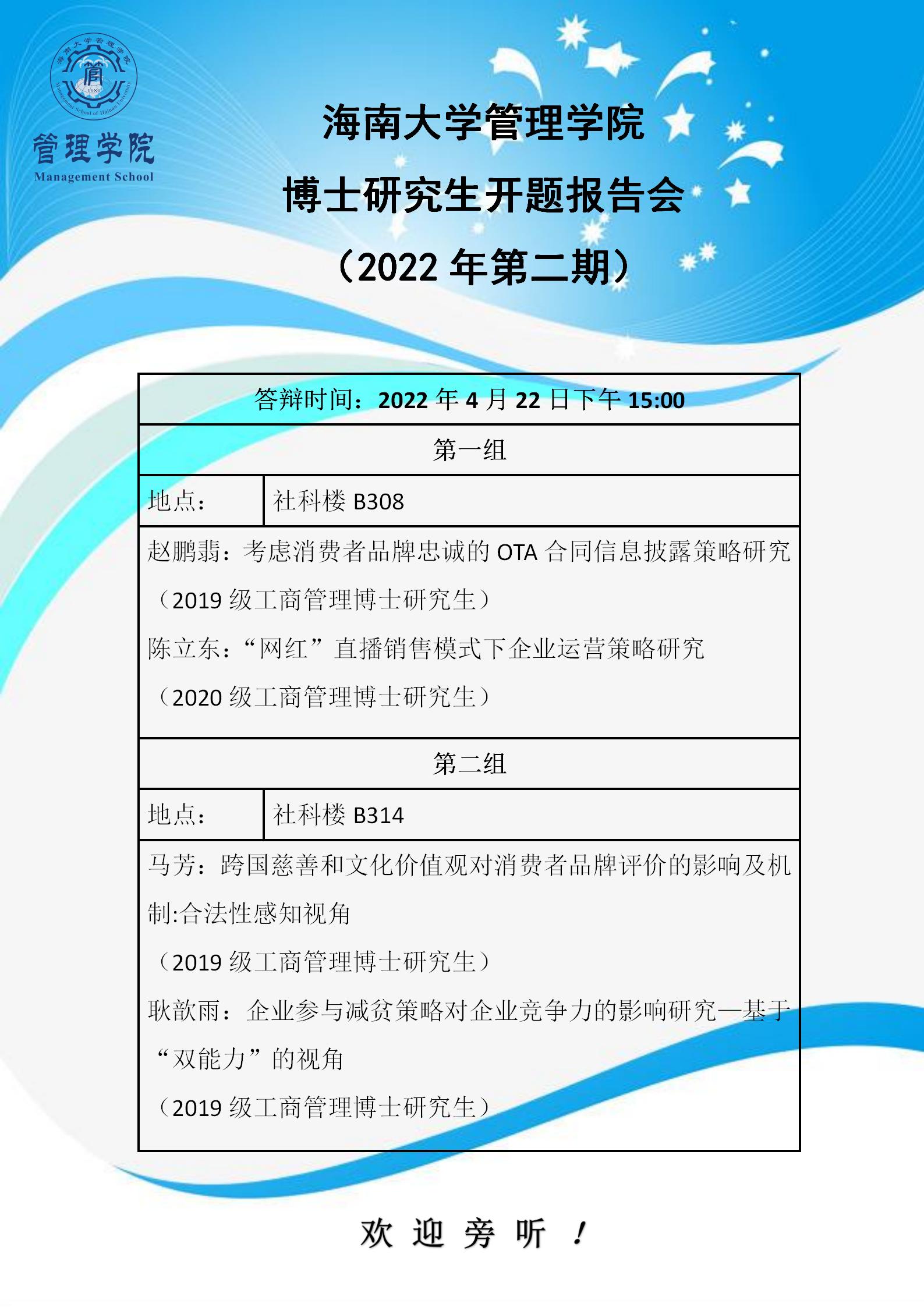 水仙直播 管理学院博士研究生开题报告会(2022年第二期)