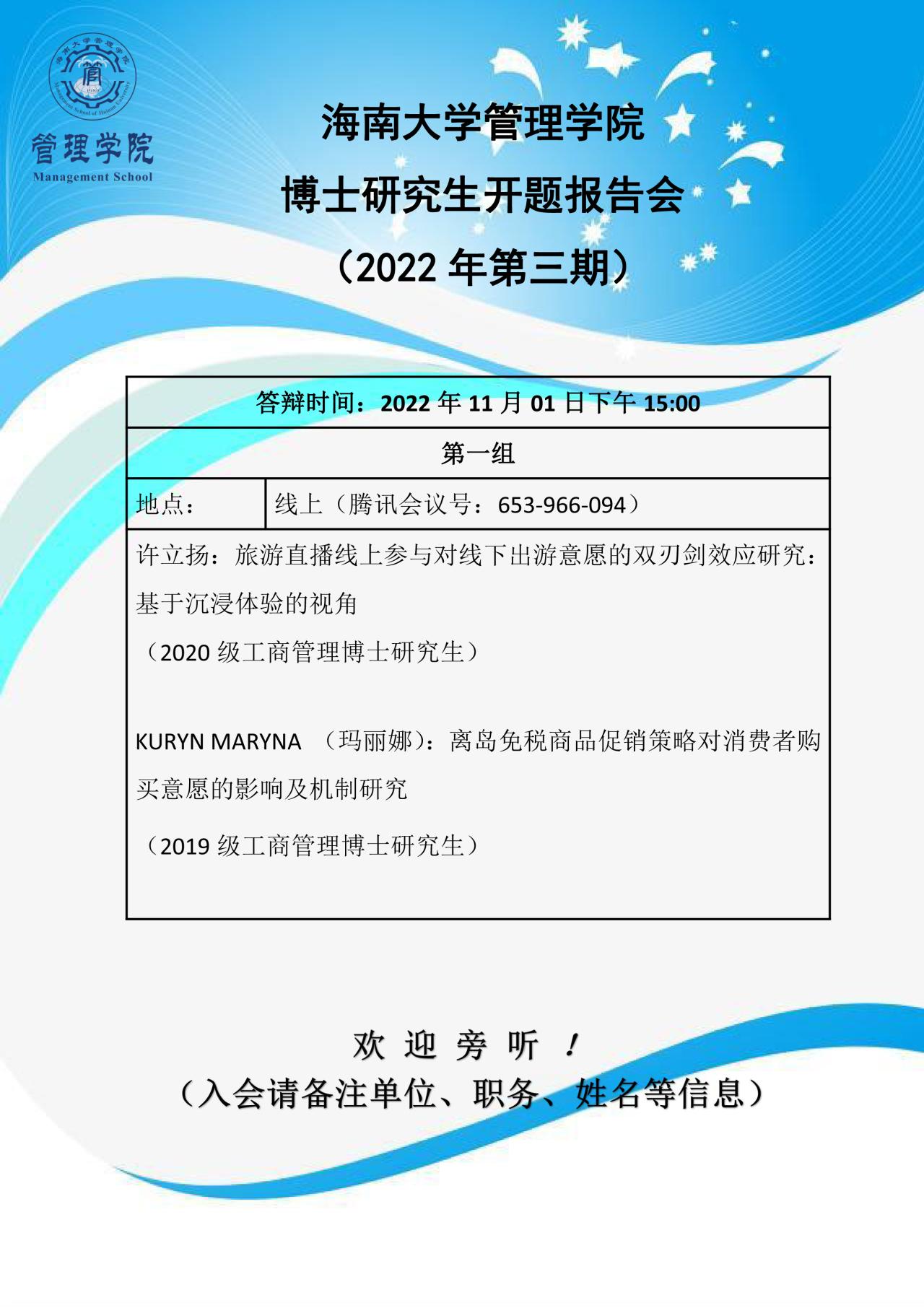 水仙直播 管理学院博士研究生开题报告会(2022年第三期)