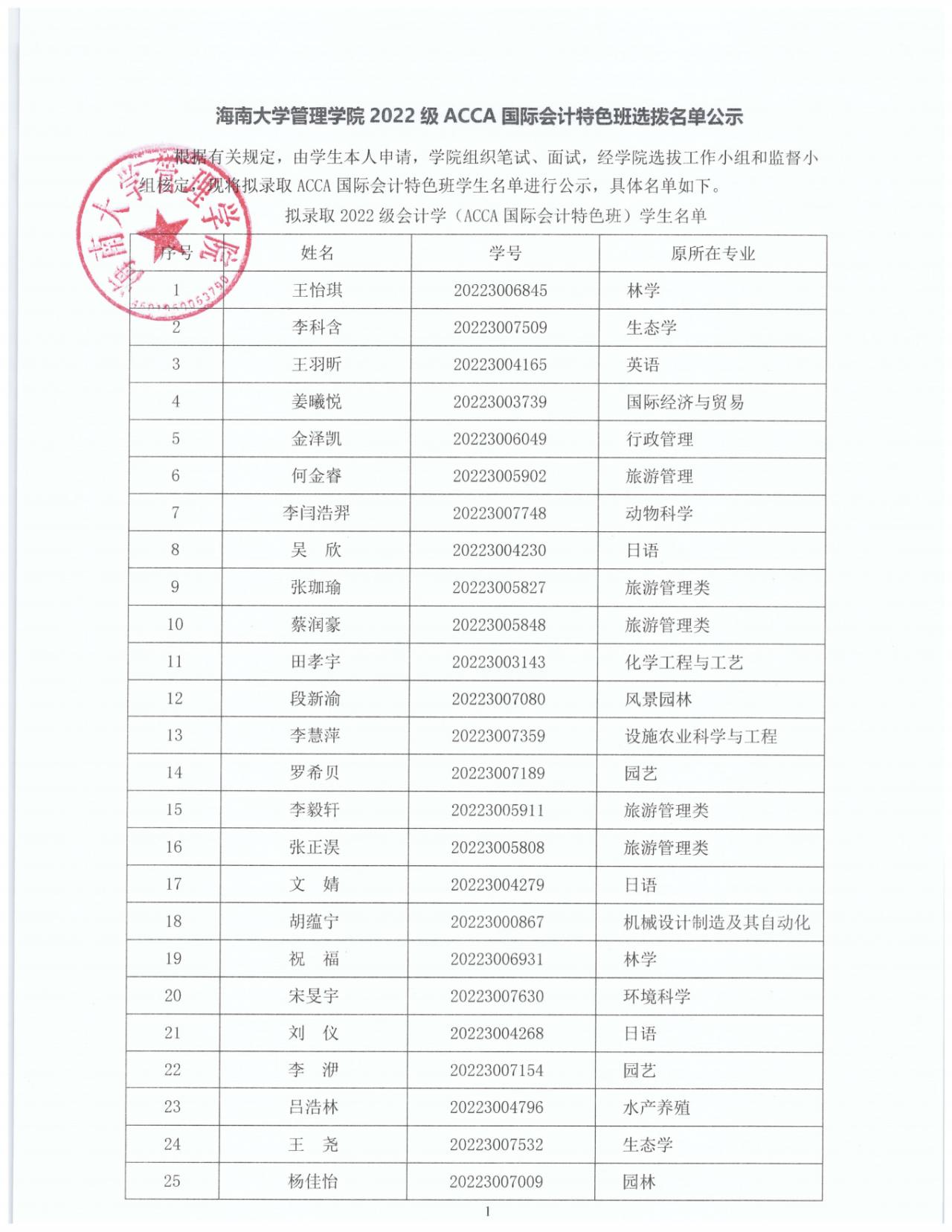 水仙直播 管理学院2022级ACCA国际会计特色班选拔名单公示