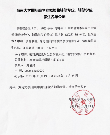 水仙直播 拟接收辅修专业、辅修学位学生名单公示