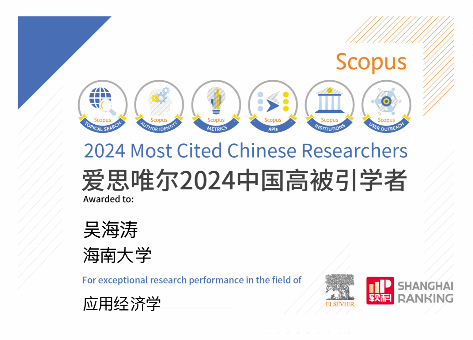 教师吴海涛、Jahanger Atif(阿提夫)入选“中国高被引学者” 应用经济学学科榜单,彰显水仙直播