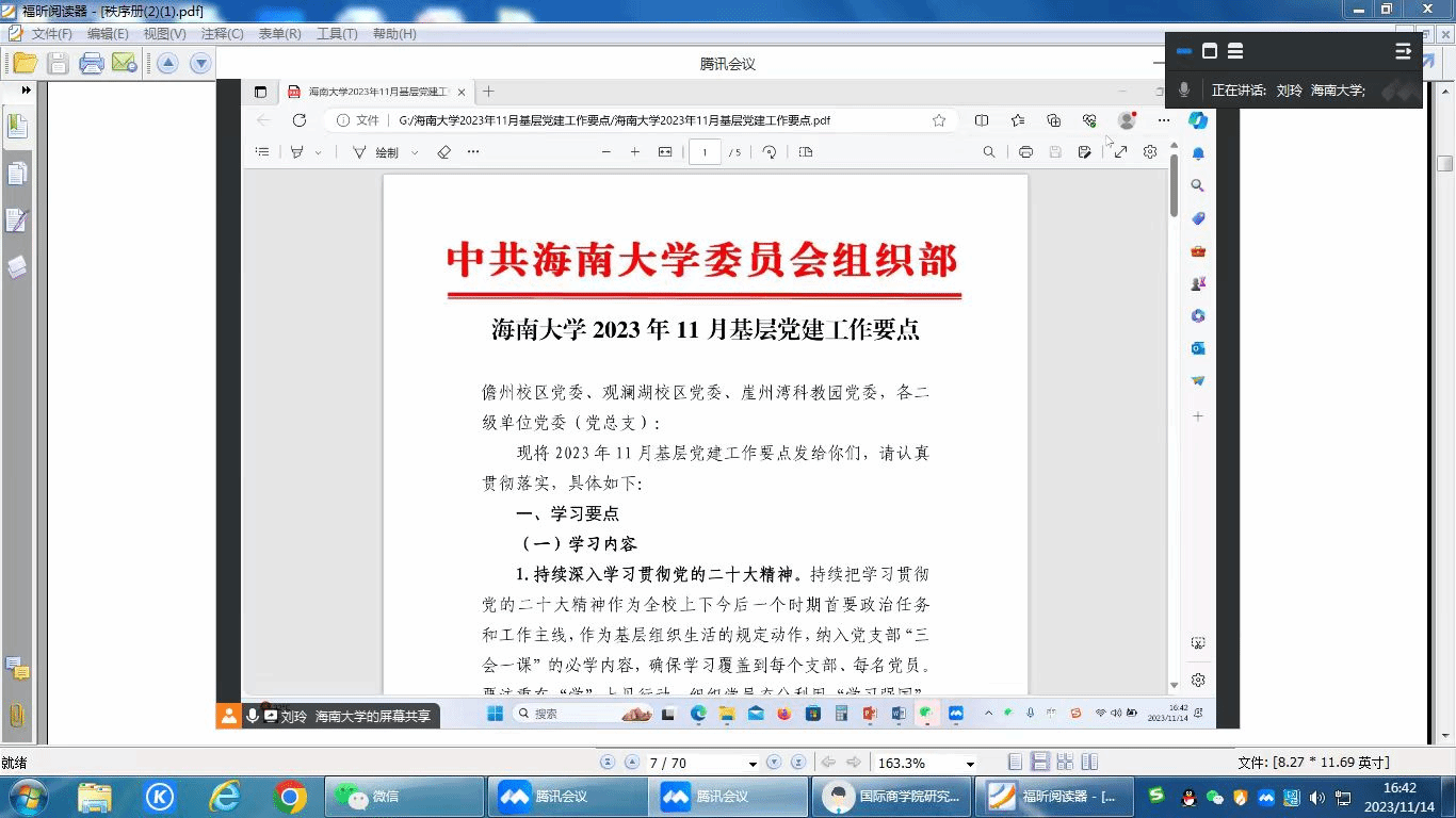 2023年11月,水仙直播 各党支部分别召开了学习会,持续深入学习贯彻党的二十大精神,对标学院党委关于开好2023年11月组织生活会的各项要求。学院班子成员带头参加所在党支部组织生活会,并列席所联系党支部组织生活会,加强优质化党支部和特色化党支部建设指导,制定各支部“巩固标准化”建设问题清单,确保工作落到实处。