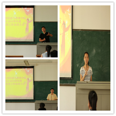 6月16日下午,学院在4-106举行学生党务总结会议。学院党委副书记周邦华、学工办张益民老师、学生党建工作领导小组全体成员、学生党支部全体学生委员出席了本次会议,会议由学工办张乃脆老师主持。 首先,学院党委副书记周邦华进行总结发言,他充分肯定了2014-2015学年度学院学生党建工作取得的成绩,同时也指出了活动存在的一些不足之处,并要求各党支部认真作好下一学年度交接工作和活动策划。 会上,张益民老师对下年度的学生党建工作作出规划和部署,然后由各学生党支部委员代表和学生党建小组各组长对本学年度所开展的党务工作进行总结汇报。 会议最后,学工办张乃脆老师对学院本年度学生党务工作作了简要总结,并就学生党建指导老师调整作了相关通报。