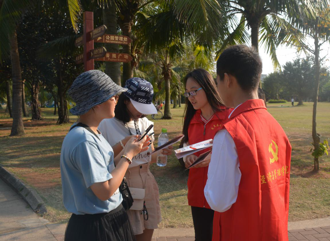 在演讲比赛进行的同时,党建办的学生干部向路人进行宣讲活动,通过细致的讲解与精心准备的宣传册,让先烈的事迹与先进榜样的力量感染更多人。