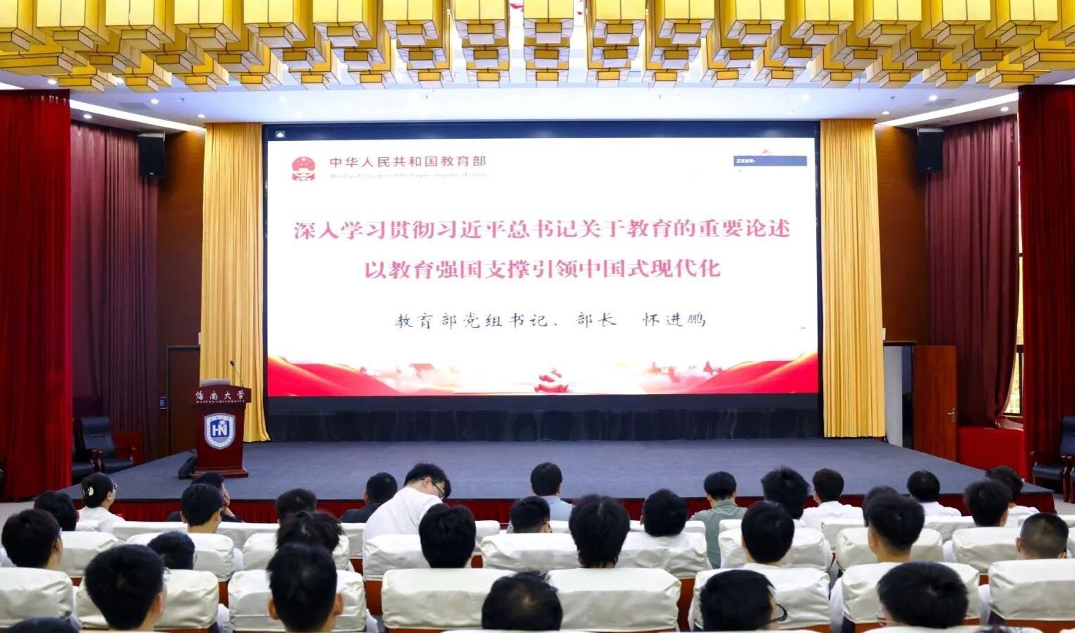 全体党员教师通过同步视频方式,共同学习教育部党组书记、部长怀进鹏主讲的“深入学习贯彻习近平总书记关于教育的重要论述 以教育强国支撑引领中国式现代化”专题报告。