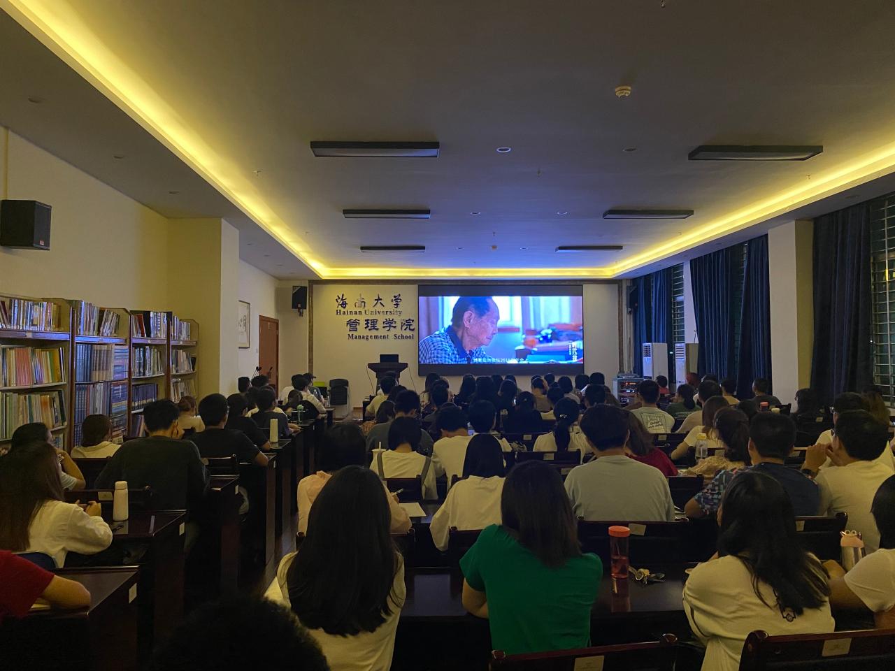 管理学院党委组织于社科楼B112观看纪录片《为时代而歌——袁隆平》,共百余名师生党员参加。