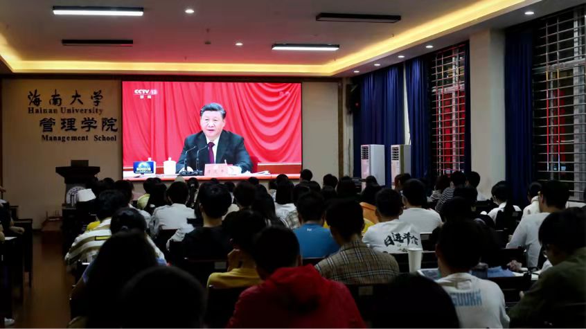 2021年11月17日晚7点,管理学院党委于社科楼B112开展党史学习教育主题观影活动,组织观看了CCTV特别节目《中共中央举行新闻发布会介绍党的十九届六中全会精神》,各支部党员到场参加。