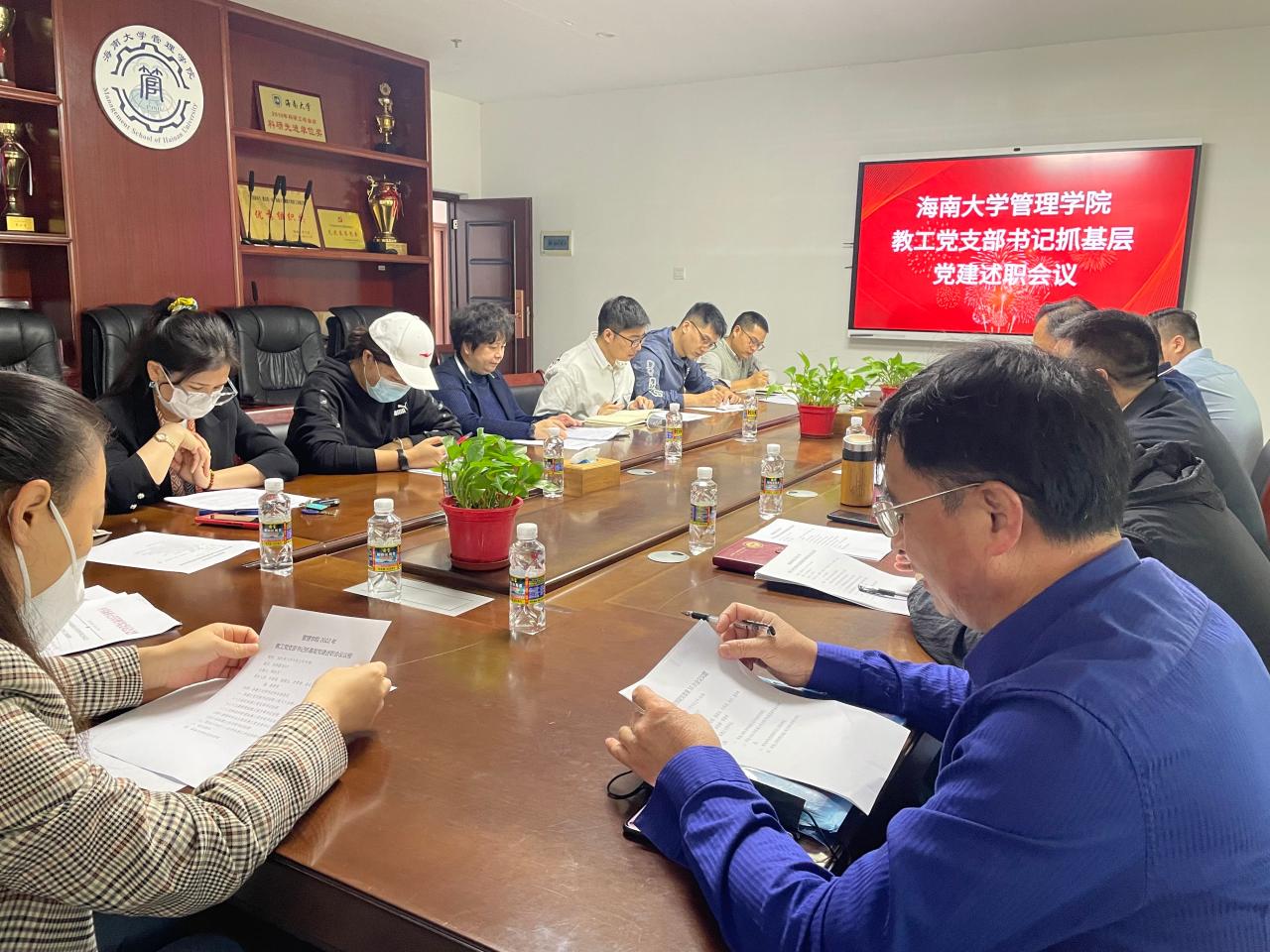 管理学院党委在社科楼B314召开2022年度党支部书记抓基层党建工作述职评议会议,学院党委书记邢谷川主持会议。