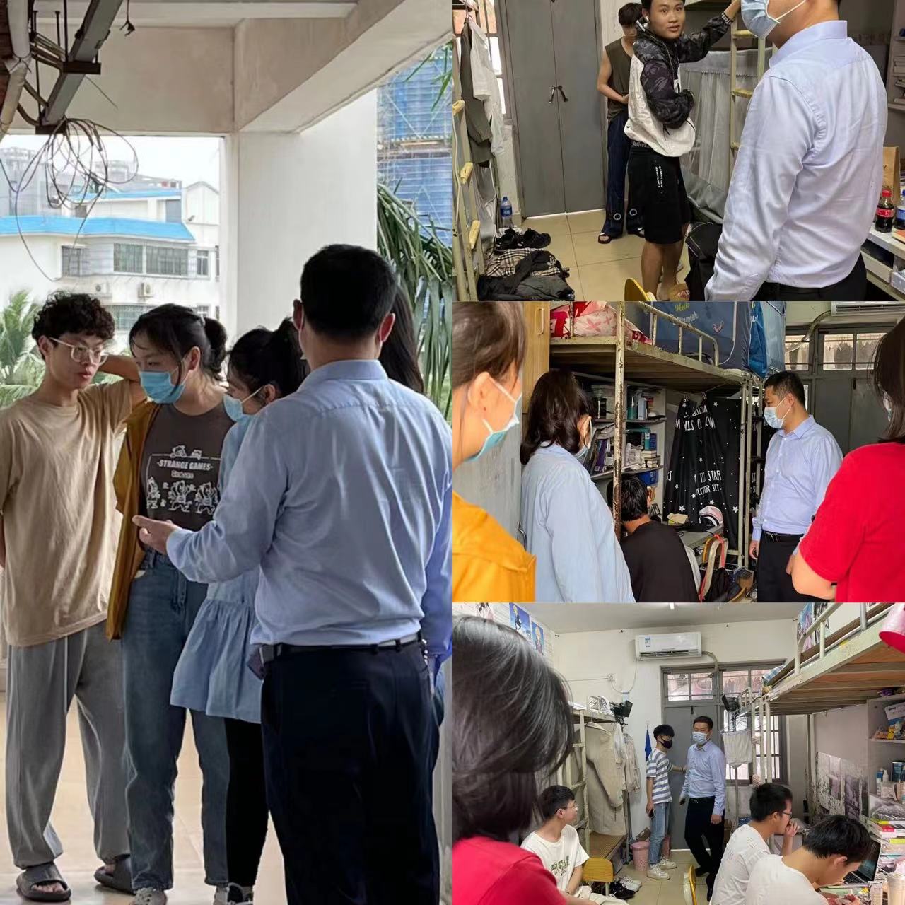 为进一步落实学校学院防疫工作安排,了解学生生活和心理状态,3月16日下午,管理学院党委副书记易振带领学院全体辅导员走访学生宿舍。