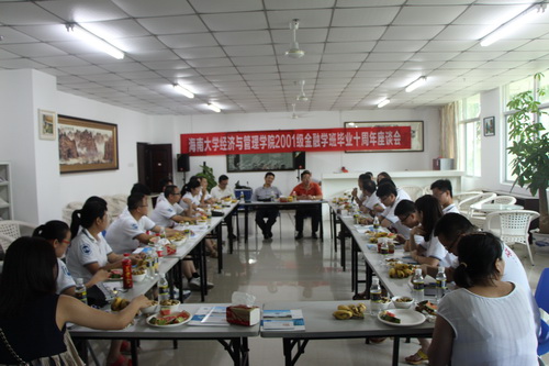经济与管理学院2001级金融学班10周年座谈会。应邀参加了本次活动的师生有院党委冯广波书记、原研究所所长李仁君教授、陈弦副教授、孙容副教授、吴新老师、谭继老师及2001级金融学班同学。