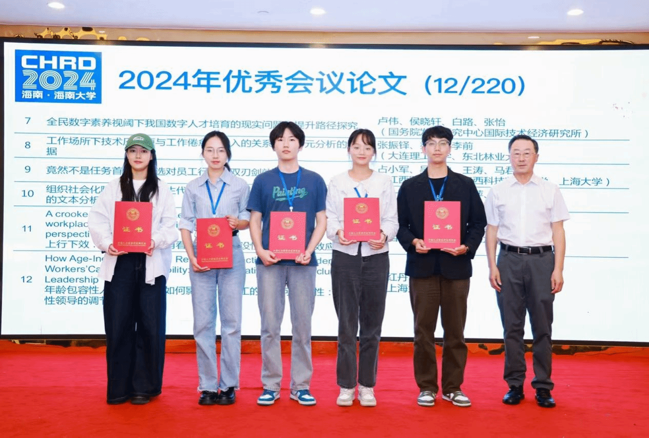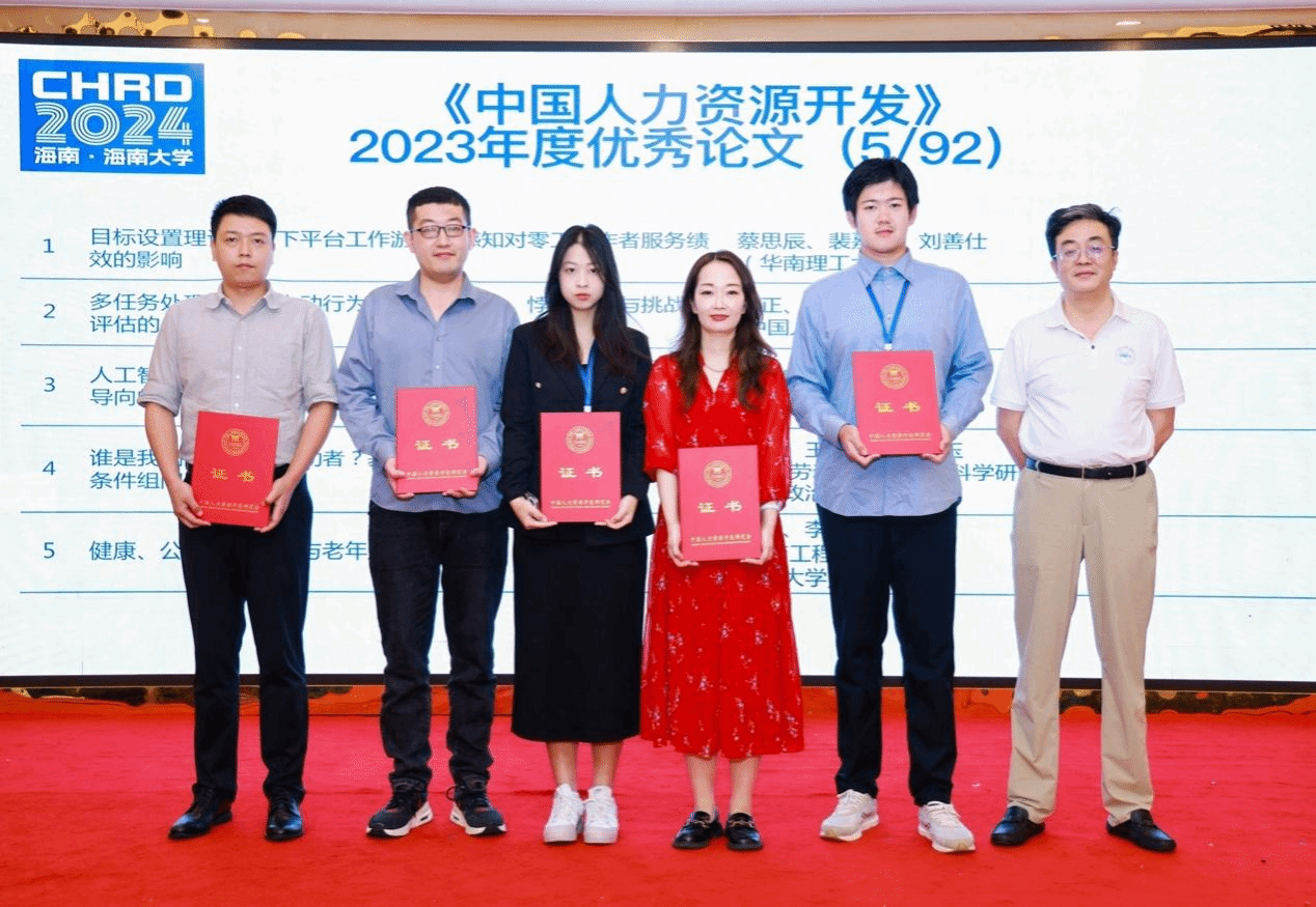 院长唐宁玉教授为12偏优秀会议论文作者颁奖。同时,还评选出《中国人力资源开发》2023年发表的5篇优秀论文,由中国人力资源开发研究会会长、《中国人力资源开发》主编欧晓理为获奖论文作者颁奖。