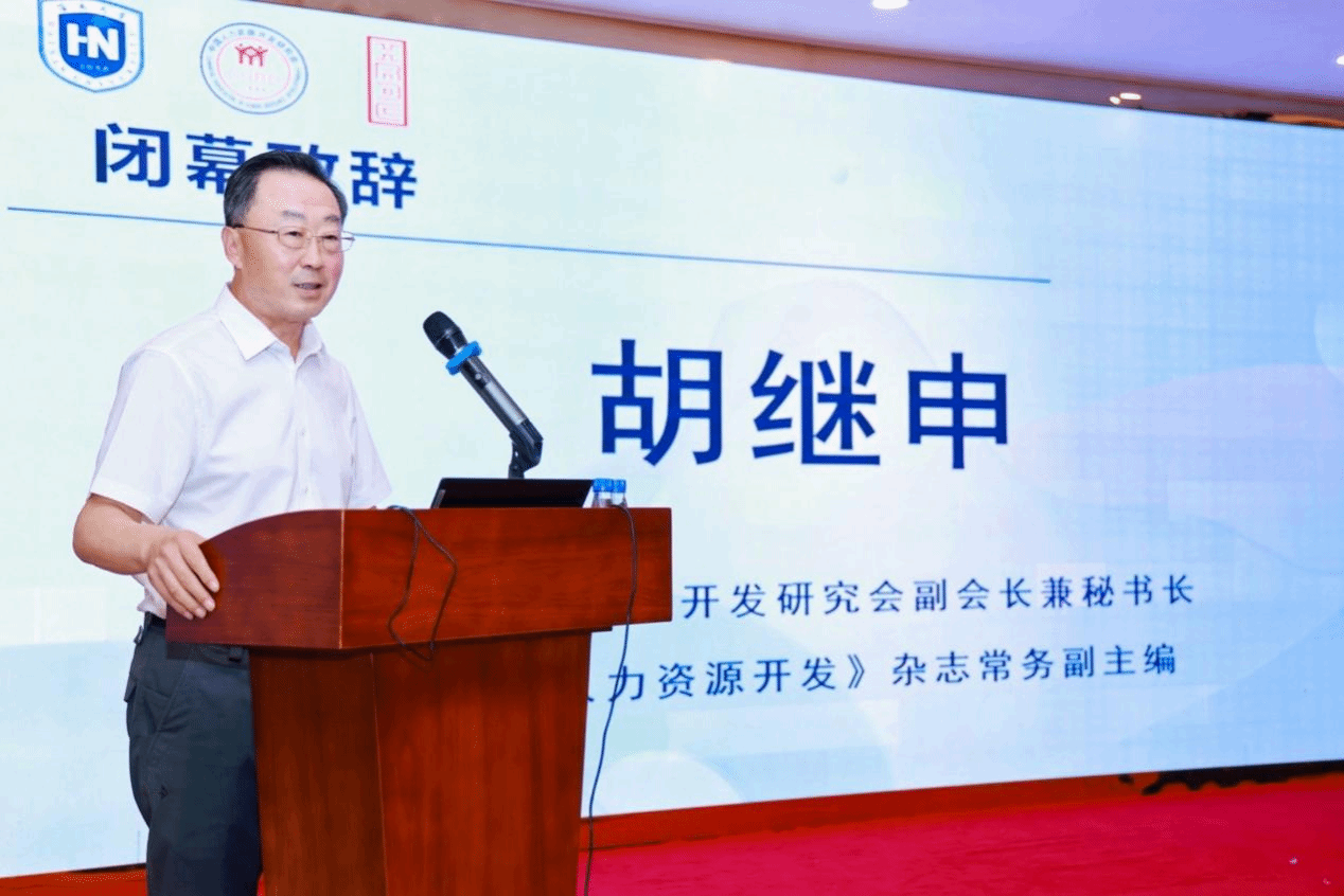 颁奖仪式结束后,中国人力资源开发研究会副会长兼秘书长、《中国人力资源开发》杂志常务副主编胡继申进行闭幕式致辞并作会议总结。他高度评价了本次年会,认为体现出参与广泛、交流深入、守正创新的特点,学术年会不仅拓展了参与者的视野,而且加深了相互间的理解和不同学术观点的交流。他指出,未来应进一步更新和凝练人力资源开发的研究方向,积极推广优秀论文,共同提升杂志质量。最后,他向《中国人力资源开发》杂志社、承办单位水仙直播