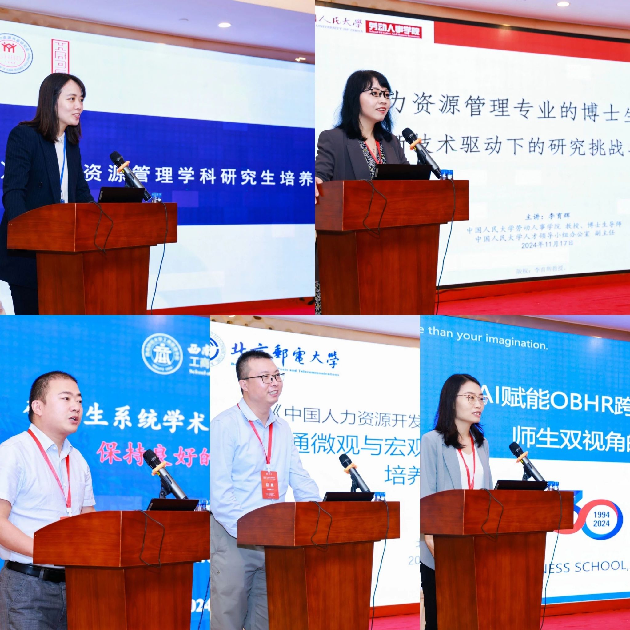 本次会议设有人力资源管理学科研究生培养圆桌论坛,北京外国语大学李倩教授主持了本次圆桌论坛,邀请到中国人民大学李育辉教授、西南财经大学杨付教授、北京邮电大学赵晨教授、上海大学霍伟伟教授、北京外国语大学李倩教授就人力资源管理研究生培养方式、研究生中英文期刊投稿等内容分享观点,并与参会师生进行了热烈的对话。