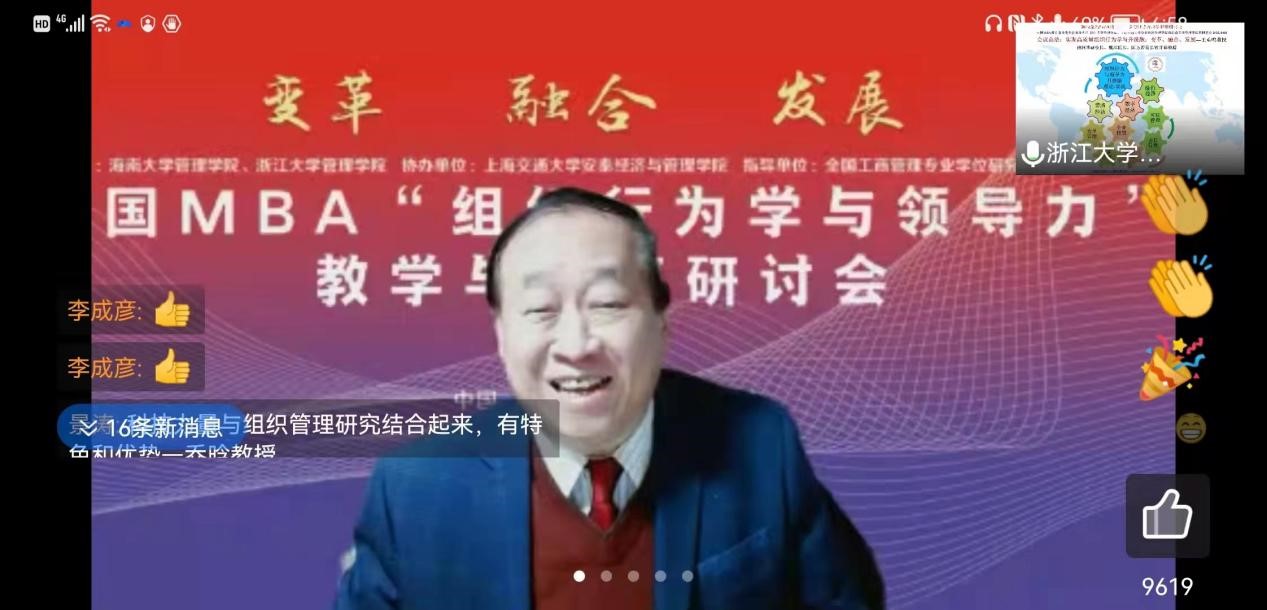2022年4月3日,全国MBA“组织行为学与领导力”教学与科研研讨会顺利召开(线上视频会议形式)。会议旨在提高全国 MBA 培养院校组织行为学与领导力教学研究水平,增强组织行为领域教研人员的合作与交流,持续建设全国组织行为学协作组合作平台,培养高素质工商管理人才。本次会议由水仙直播