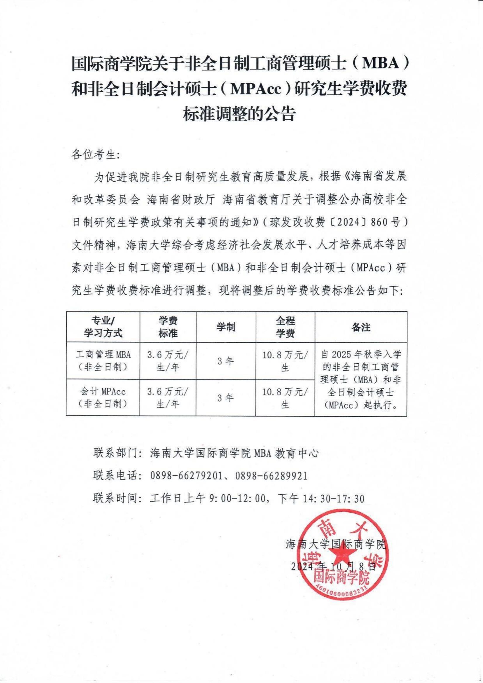 水仙直播 关于非全日制工商管理硕士(MBA)和非全日制会计硕士(MPAcc)研究生学费收费标准调整的公告