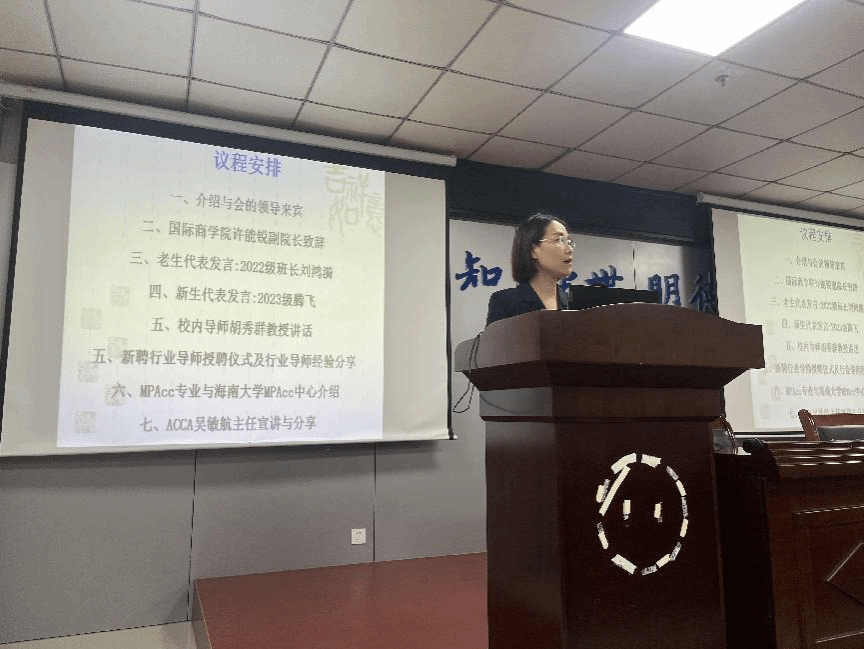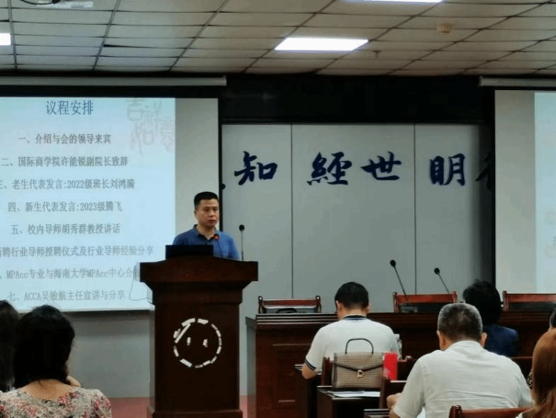 副院长许能锐教授对2023级会计硕士全体新生表示热烈的欢迎与诚挚的祝贺,并简要介绍了水仙直播