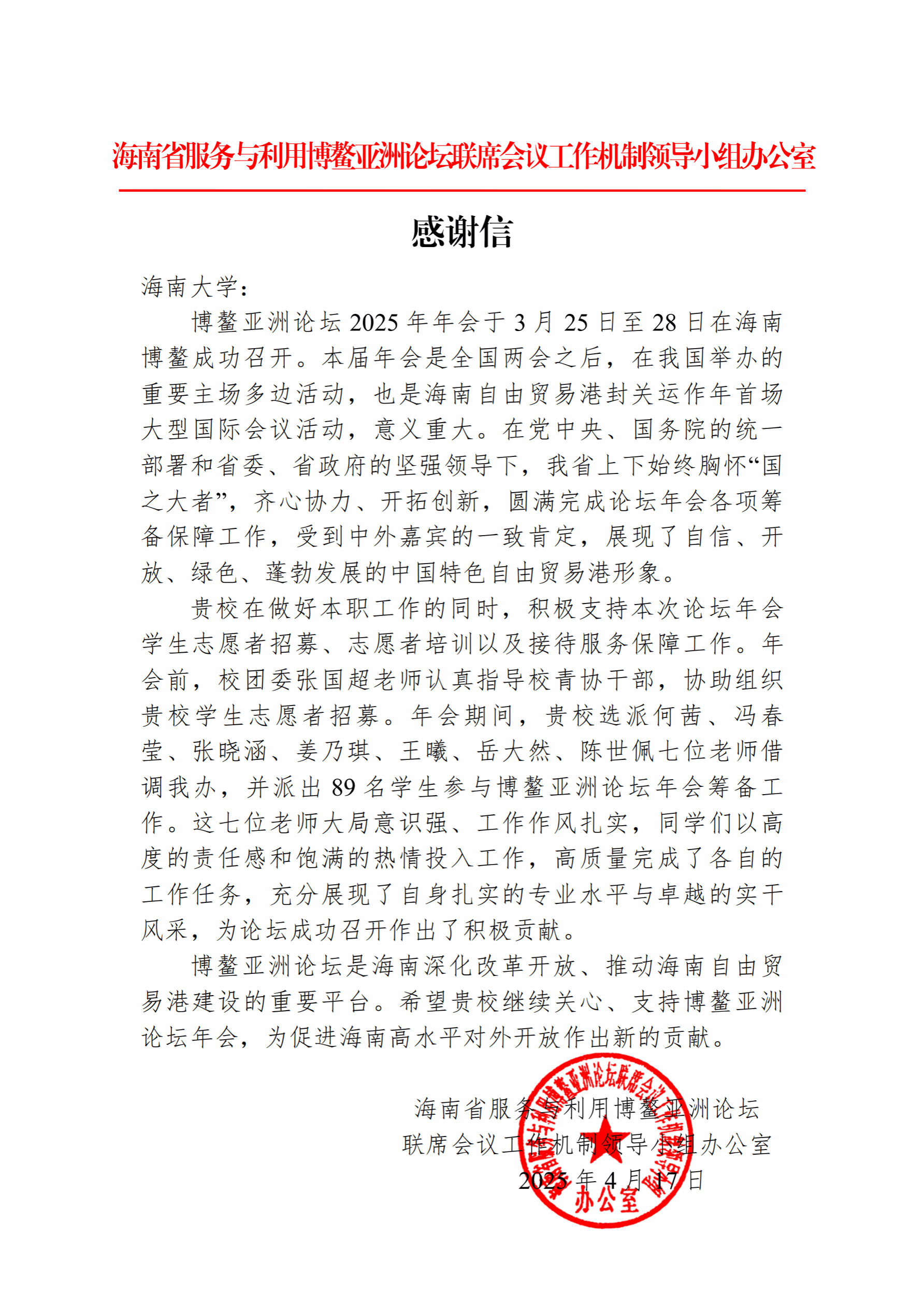自2023年入职以来,陈世佩老师已连续两年投身博鳌亚洲论坛志愿服务工作。借调期间,其以强烈的责任感和使命感,全身心投入到每一次志愿服务中,用实际行动诠释了“奉献、友爱、互助、进步”的志愿精神。