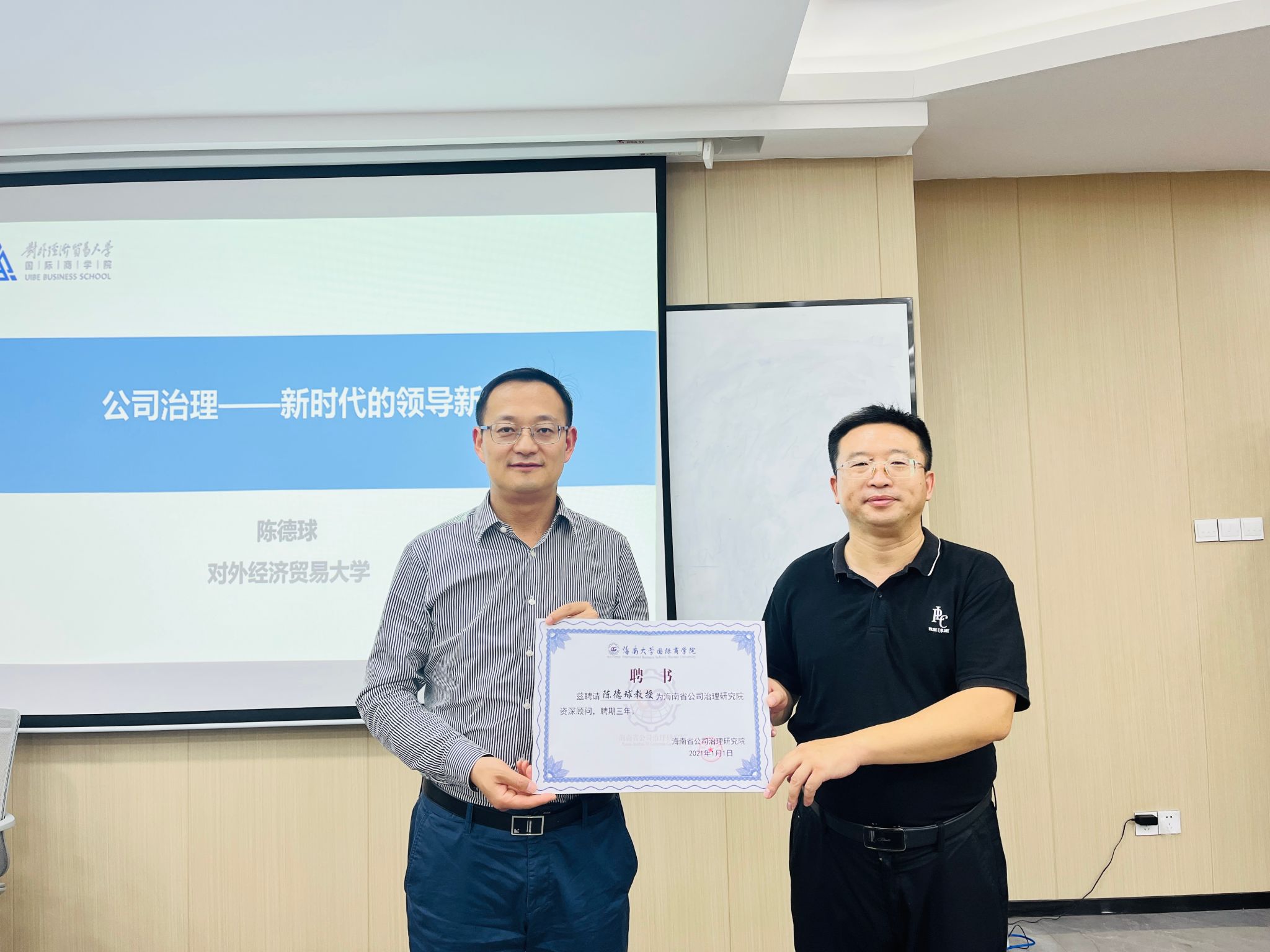 副院长付景涛教授主持了讲座。在讲座开始前,付景涛教授代表海南省公司治理研究院向陈德球教授颁发了资深顾问聘书。